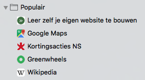 (Nu begrijp je waarschijnlijk ook waar de naam favicon vandaan komt: het is de samentrekking van de woorden favorite en icon.) Hiernaast zie je een voorbeeld van een aantal favicons binnen een favorietenlijst.